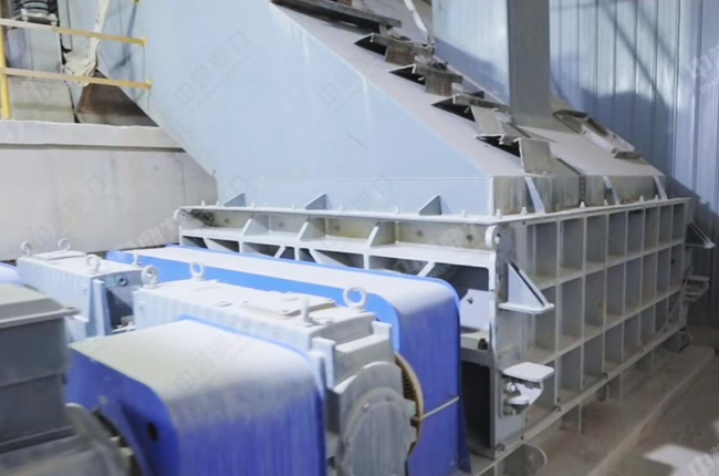 1、原料處理:共用歐版顎破初碎后進(jìn)入中轉(zhuǎn)倉